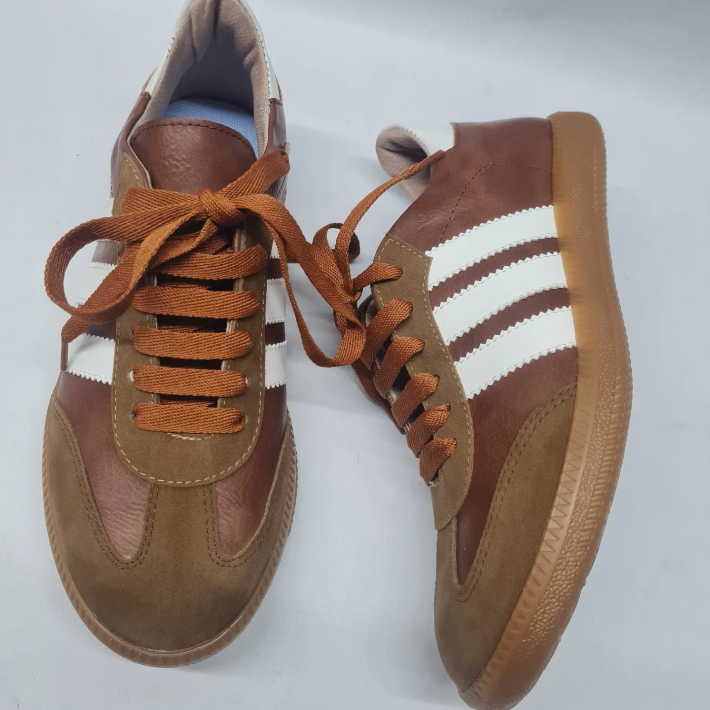 Zapatillas de simil cuero (PU) con recortes de goma en sus laterales, con interior de un tejido respirable y lengueta rellena. Contiene lineas blancas en los laterales. Acceso mediante cordonera, con cordones anchos. Base a tono